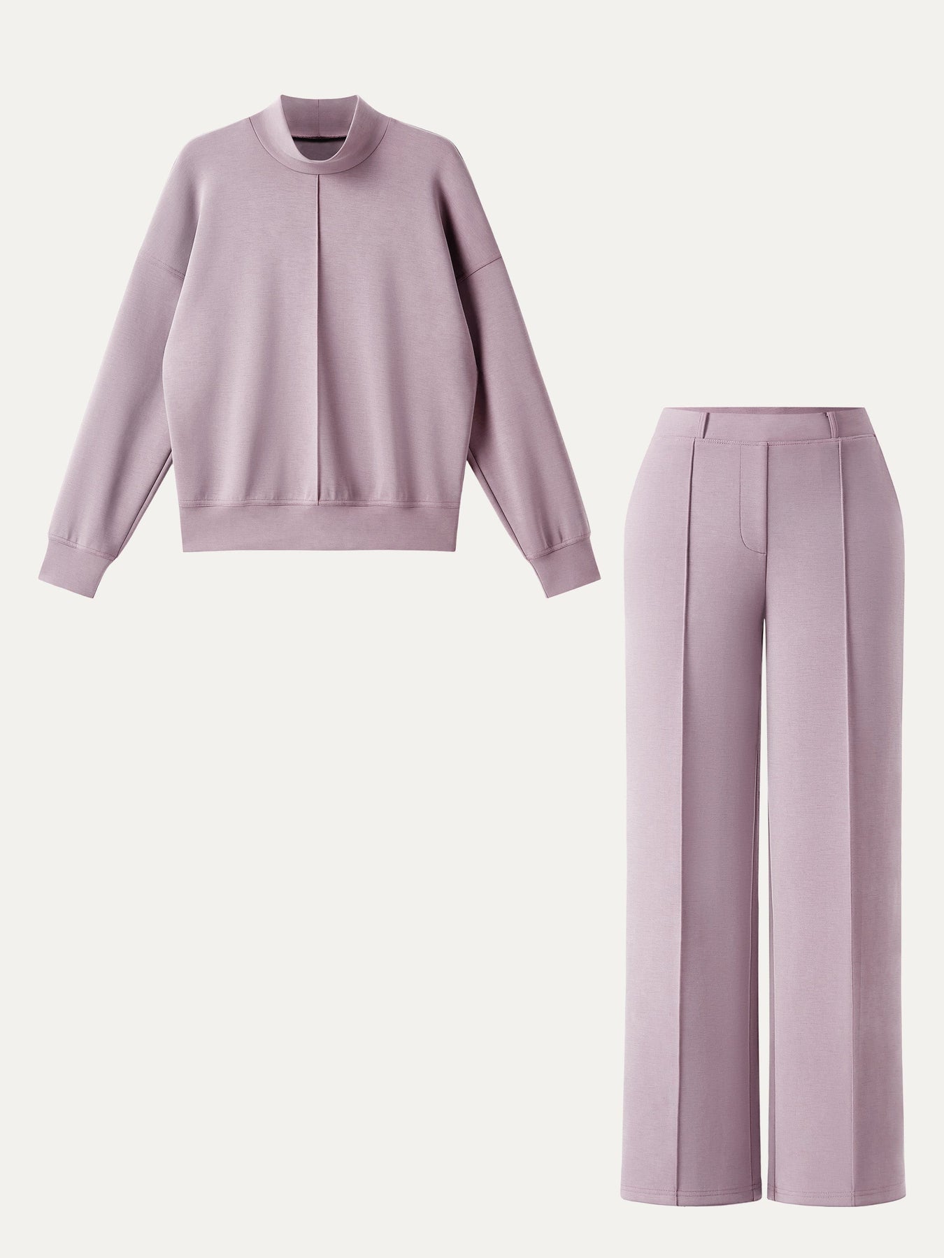 2-teiliges Set aus Mockneck-Pullover und Mid-Rise-Hose mit geradem Bein und Taschen